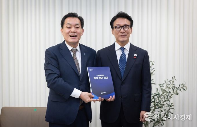 한국시사경제 사회팀 | 이재준 수원특례시장이 김민석 국무총리에게 수원의 미래 성장 기반 구축을 위한 핵심 현안이 실현될 수 있도록 정부 차원에서 적극적으로 지원해 달라고 건의했다.