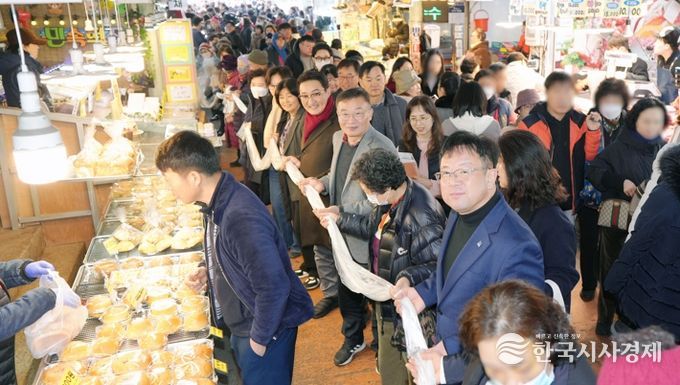 한국시사경제 사회팀 | 수원 못골종합시장이 새해를 맞아 16일 전통시장 상인과 시민이 함께하는 ‘가래떡 나눔 행사’를 열었다.