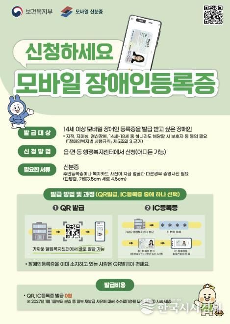 이유진 장애인복지과장은 “모바일 장애인등록증 도입으로 장애인의 행정 서비스 접근성이 한층 향상될 것으로 기대된다”며 “디지털 기술을 통해 장애인의 생활 편의를 실질적으로 개선할 수 있도록 제도가 안정적으로 정착되도록 최선을 다하겠다”고 말했다.