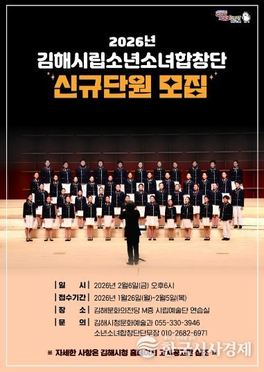 한국시사경제 노승선 기자 | 김해시는 2026년부터 활동할 김해시립소년소녀합창단의 신입 단원을 모집한다고 19일 밝혔다.