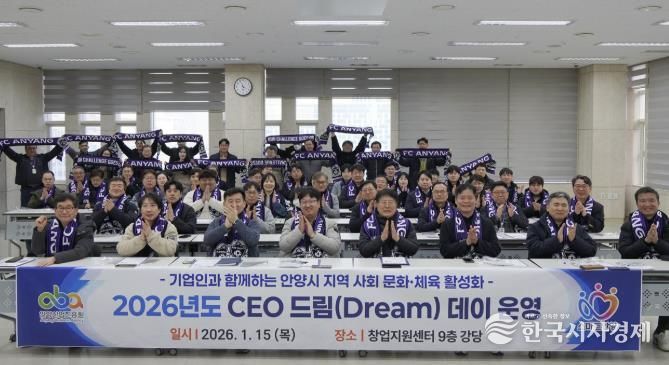 한국시사경제 경기취재본부 | 안양산업진흥원은 15일 오후 3시30분 안양창업지원센터 강당에서 관내 기업인 150여 명을 대상으로 지역사회 문화·체육 활성화를 위한 ‘2026 CEO 드림(Dream) 데이’를 열었다.