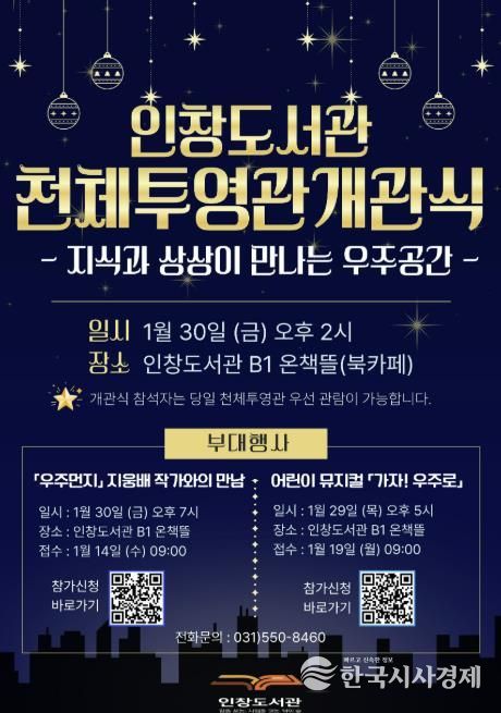 또한 1월 29일 오후 5시에는 우주인이 되기 위한 훈련 과정을 그린 우주과학 뮤지컬 ‘가자! 우주로’가 운영돼, 어린이들에게 우주에 대한 호기심과 상상력을 키워줄 것으로 기대된다. 행사와 관련한 자세한 사항은 인창도서관 홈페이지를 참고하거나 도서관정책팀으로 문의하면 된다.