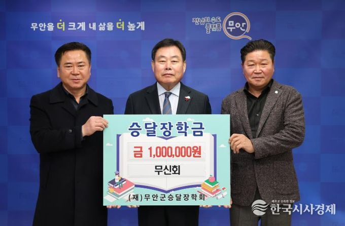 한국시사경제 권충현 기자 | 무안군은 지난 1월 19일 무신회 박석현 회장이 지역 인재 육성을 지원하기 위해 (재)무안군승달장학회에 장학금 100만 원을 기탁했다고 밝혔다.