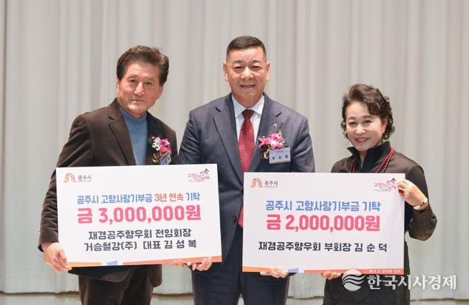 20일 공주시에 따르면, 김순덕 재경공주향우회 상임부회장과 김성복 전임 회장은 각각 200만 원과 300만 원을 기부하며 고향 발전에 대한 뜻을 보탰다.
