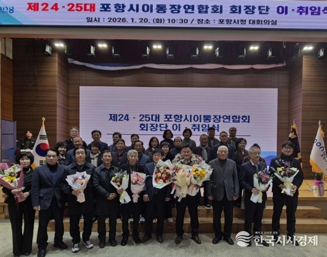한국시사경제 노승선 기자 | 포항시 이통장연합회는 20일 시청 대회의실에서 제24·25대 포항시 이통장연합회 회장단 이·취임식을 개최했다.
