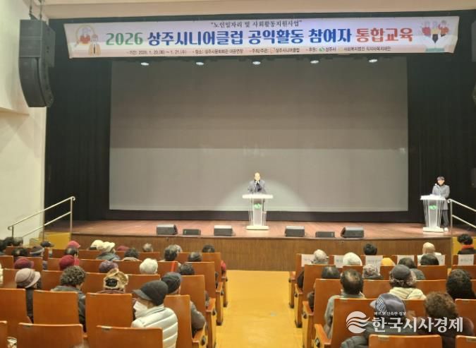한국시사경제 경북취재본부 | 상주시니어클럽은 2026년 노인일자리 및 사회활동지원사업 참여자를 대상으로 1월 20일부터 21일까지 이틀간 상주문화회관에서 통합교육을 실시했다.