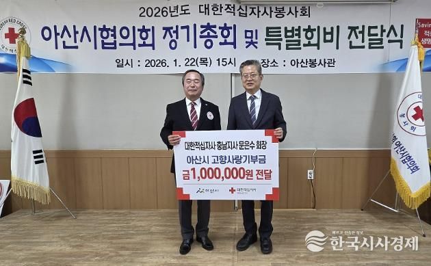 특히 이날 문은수 대한적십자사 충남지사 회장은 지난해 수해 복구 등 각종 구호 활동과 매년 취약계층을 위한 특별회비 전달 등 아산시의 적극적인 협력에 대한 감사의 뜻을 전하며, 고향사랑기부금 100만 원을 전달했다.