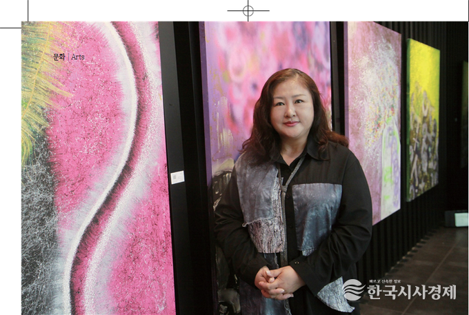 중심이 되는 작품세계는 조명 빛에 따라 보 는 시선에 따라 다르게 보일 뿐만 아니라 아름다운 색의 황홀 경을 선사하는 자개빛을 닮은 무지갯빛을 서양화 캔버스에 홀 로그램 기법으로 표현하고 있다. 개인전 31회, 회원전 및 해외 전 300여회 참여한 경력은 그녀의 끊임없는 작품활동을 보여 주는 대목이다.