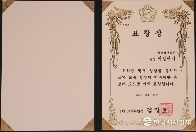 한국시사경제 권충언 기자 | 에스티어학원 제갈세나 원장, 2025년 12월 23일 한국프레스센터에서 한국시사경제 • 코리아타임뉴스(윤광희 회장)주최, SBS • 기획재정부 • 교육부 • 문화체육관광부 • 농림축산식품부 • 산업통상부 • 기후에너지환경부 • 고용노동부 • 해양수산부 • 중소벤처기업부 후원으로 열린 ‘2025 대한민국 글로벌파워브랜드 대상(GPBA) 및 국회 상임위원장 표창 시상식’ 에서 제갈세나 원장이 대상과 국회 교육위원장 표창을 수상했다.
