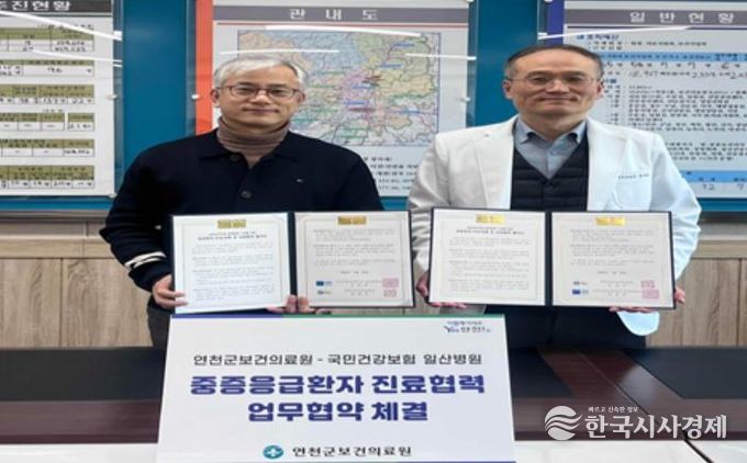 한국시사경제 경기북부취재본부 | 연천군보건의료원은 지난 23일 국민건강보험 일산병원과 중증응급환자의 신속한 이송과 진료협력을 위한 업무협약을 맺었다.