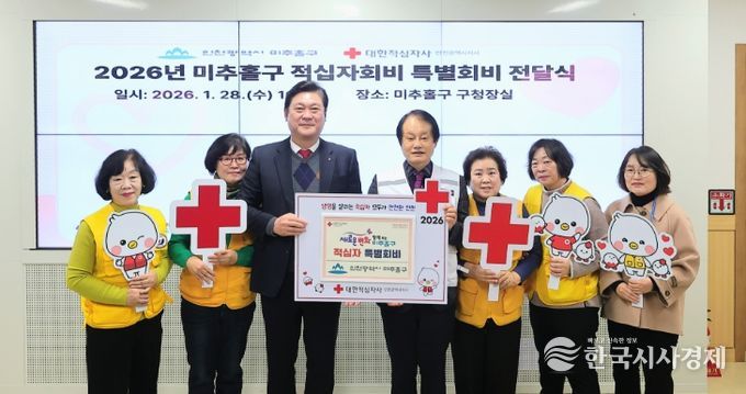 한국시사경제 윤광희 기자 | 인천 미추홀구는 28일 구청장실에서 대한적십자사 인천지사(회장 조의영)와 적십자봉사회 미추홀구협의회(회장 조혜정) 등이 참석한 가운데 적십자 특별회비 200만 원을 전달했다.