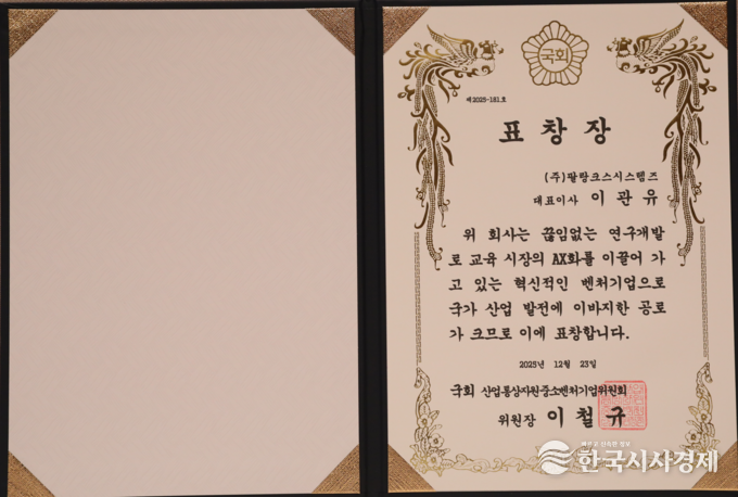 한국시사경제 김숙영 기자 | 팔랑크시스템즈 학원의신 이관유 대표가 2025년 12월 23일 한국프레스센터에서 한국시사경제 • 코리아타임뉴스(윤광희 회장)주최, SBS • 기획재정부 • 교육부 • 문화체육관광부 • 농림축산식품부 • 산업통상부 • 기후에너지환경부 • 고용노동부 • 해양수산부 • 중소벤처기업부 후원으로 열린 ‘2025 대한민국 글로벌파워브랜드 대상(GPBA) 및 국회 상임위원장 표창 시상식’ 에서 이관유 대표가 대상과 국회 산업통상자원중소벤처기업위원장 표창을 수상했다.