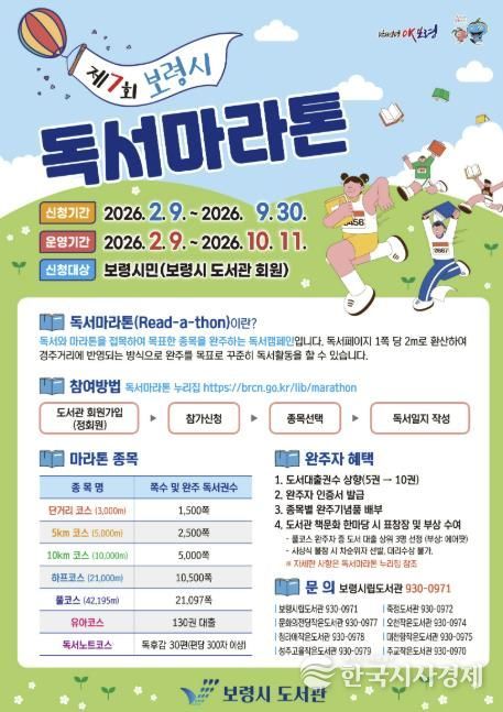 허성원 문화교육과장은 “이번 독서마라톤은 시민들의 독서 습관을 장려하고 책 읽는 문화를 확산하는 데 큰 의미가 있다”며 “앞으로도 다양한 프로그램을 통해 시민들의 독서 생활을 지원하고, 책 읽는 도시 보령을 만들어 나가겠다”고 말했다.