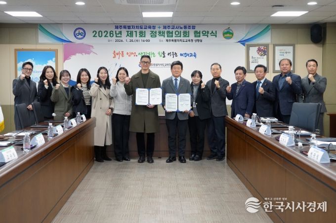 한국시사경제 노승선 기자 | 제주특별자치도교육청과 제주교사노동조합은 학교 현장에서의 근무 여건 개선과 전문성 향상을 위한 6개 분야 정책과제에 대해 28일 도교육청 2층 상황실에서 정책협의회를 갖고 최종 합의했다.