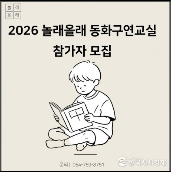 한국시사경제 노승선 기자 | 제주도교육청 제주도서관은 2월 8일부터 4월 26일까지 매주 일요일 오전 11시 6~7세 어린이를 대상으로 하는 ‘2026년 놀래올래 겨울방학 동화구연교실’을 운영한다.