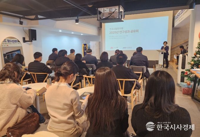 연구원은 지난 27일과 28일 이틀간 전주시 소통협력센터에서 ‘2025년 연구성과 공유회’를 열고, 인구·재정·산업·도시·기후 등 전주시 주요 현안을 주제로 한 연구 결과를 공개했다.