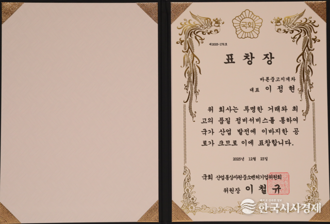 한국시사경제 권충언 기자 | 바른중고지게차 이정현 대표, 2025년 12월 23일 한국프레스센터에서 한국시사경제 • 코리아타임뉴스(윤광희 회장)주최, SBS • 기획재정부 • 교육부 • 문화체육관광부 • 농림축산식품부 • 산업통상부 • 기후에너지환경부 • 고용노동부 • 해양수산부 • 중소벤처기업부 후원으로 열린 ‘2025 대한민국 글로벌파워브랜드 대상(GPBA) 및 국회 상임위원장 표창 시상식’ 에서 이정현 대표가 대상과 국회 산업통상자원중소벤처기업위원장 표창을 수상했다.