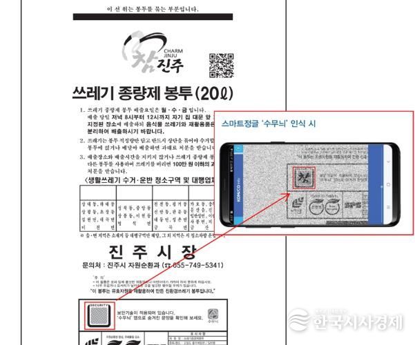 이에 따라 진주시는 한국조폐공사가 자체 개발한 위·변조 방지 기술인 ‘스마트 정글’을 종량제봉투에 도입한다.