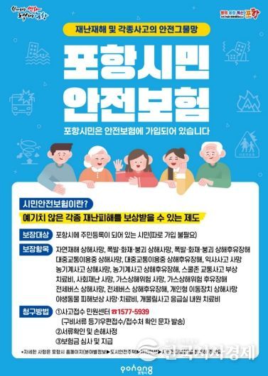 한편 포항시는 최근 3년간 시민안전보험을 통해 총 132건, 약 14억 원 규모의 보험금을 지급하며 재난과 사고로 피해를 입은 시민들의 생활 안정에 실질적인 도움을 제공해 왔다.