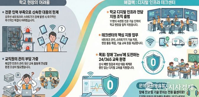 그동안 일선 학교에서는 유·무선 네트워크와 스마트기기 장애 발생 시 전문 인력 부족으로 신속한 대응에 어려움이 있었다.