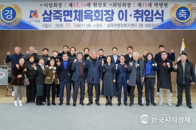 한국시사경제 경기취재본부 | 안성시 삼죽면은 지난 2월 3일, 삼죽행정복지센터 3층 대회의실에서 열린 삼죽면 체육회장 이·취임식을 성황리에 마쳤다고 밝혔다.