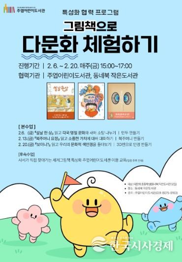 한국시사경제 윤광희 기자 | 고양특례시 주엽어린이도서관은 겨울방학을 맞아 다문화 초등학생을 대상으로 특성화 협력 프로그램 ‘그림책으로 다문화 체험하기’를 운영한다.