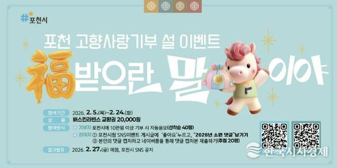 포천시 관계자는 “이번 이벤트가 고향사랑기부제에 대한 시민 관심을 높이고, 새해 소망을 함께 나누는 계기가 되길 바란다”며 “시민 모두가 따뜻하고 행복한 명절을 보내시길 기원한다”고 말했다.