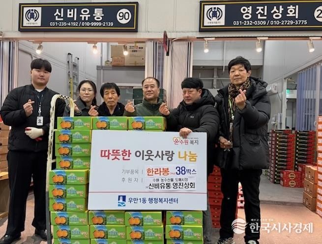 한국시사경제 사회팀 | 수원 농수산물도매시장 내 신비유통‧영진상회에서 설 명절을 앞두고 우만동 이웃들에게 따뜻한 정을 전했다고 밝혔다.