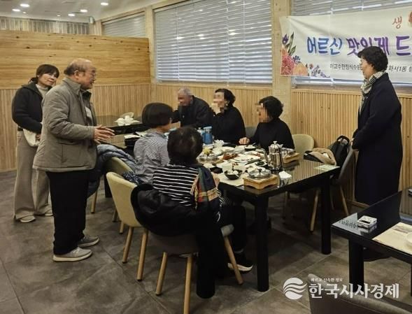 한국시사경제 사회팀 | 수원시 팔달구 화서1동은 지난 4일, 2월 생일을 맞이한 독거어르신 7명을 모시고 이교수한정식에서 '어르신 사랑의 생신상' 행사를 진행했다.