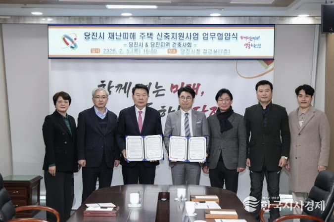 한국시사경제 충남취재본부 | 당진시는 지난 5일 당진시청 해나루홀에서 당진지역 건축사회와 재난 피해 주택 신축지원을 위한 업무협약을 체결했다고 6일 밝혔다.