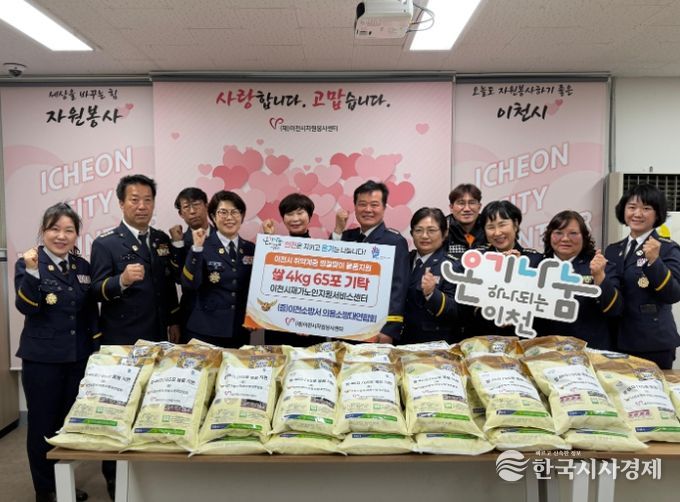 한국시사경제 기동취재팀 | 이천소방서 의용소방대연합회는 2월 5일 다가오는 명절을 맞아 지역 내 취약계층을 돕기 위해 쌀 4kg, 65포를 (재)이천시자원봉사센터에 지정기탁했다고 밝혔다.