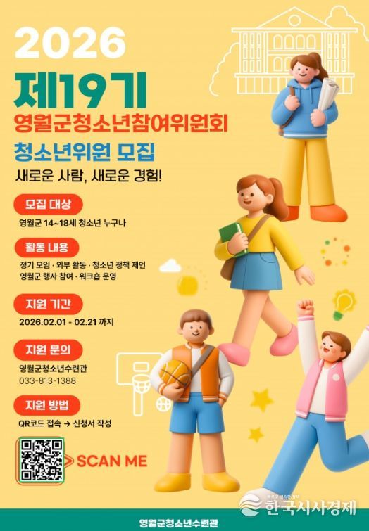 한국시사경제 권충언 기자 | 영월군청소년수련관은 관내 중~고등학교 청소년을 대상으로 오는 21일(토)까지 영월군청소년참여기구 신규, 연임 위원을 추가 모집한다.