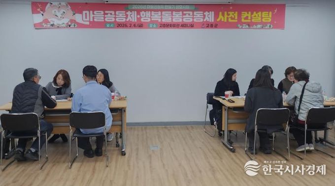한국시사경제 전남취재본부 | 고흥군은 6일 고흥문화회관 세미나실에서 2026년 마을공동체 공모사업에 선정된 공동체를 대상으로 사업의 방향성과 실행력을 높이기 위한 사전 컨설팅을 실시했다고 밝혔다.