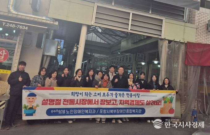 한국시사경제 문화팀 | 포항시 노인장애인복지과는 지난 6일 북부장애인종합복지관 직원들과 함께 장량성도시장에서 ‘설맞이 전통시장 장보기 행사’를 진행했다.