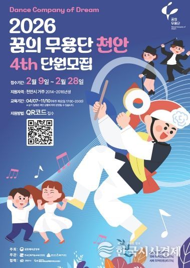 한국시사경제 충남취재본부 | 천안문화재단이 지역 아동의 예술적 감수성과 협업 역량을 키우는 ‘2026 꿈의 무용단 천안’ 단원을 9일부터 28일까지 모집한다.