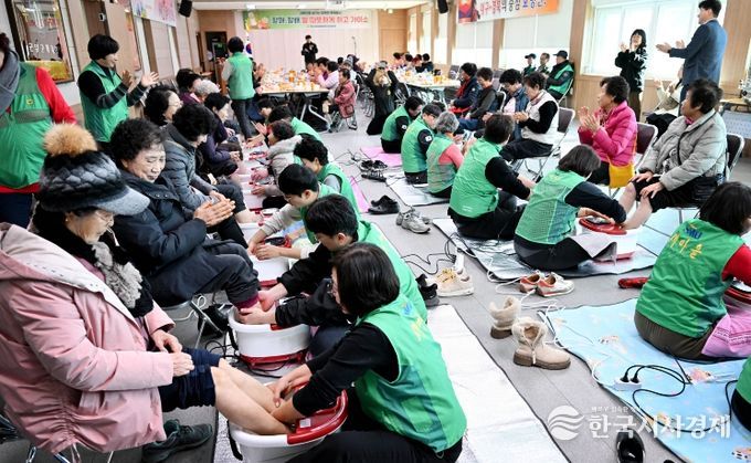 한국시사경제 이정이 기자 | 군위군새마을회(회장 박택관) 산하 직장공장새마을운동군위군협의회(회장 김천일)는 9일 오후, 효령면행정복지센터에서 지역 어르신 60여 명을 모시고‘찾아가는 공경문화 족욕봉사’를 실시했다.