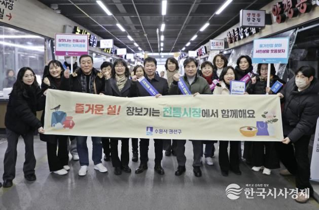 한국시사경제 사회팀 | 수원시 권선구는 지난 9일 설 명절을 맞아 권선종합시장을 찾아 지역경제를 살리기 위한 ‘전통시장 장보기 캠페인’을 실시했다.