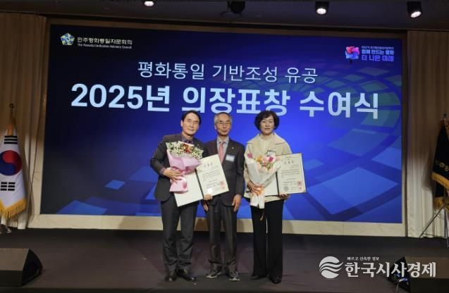 한국시사경제 이정이 기자 | 민주평통 문경시협의회 천금선 부회장과 박인국 자문위원은 11일 안동 스탠포드호텔에서 열린 ‘2025년 민주평화통일자문회의 표창 수여식’에서 의장(대통령) 표창을 수상했다.