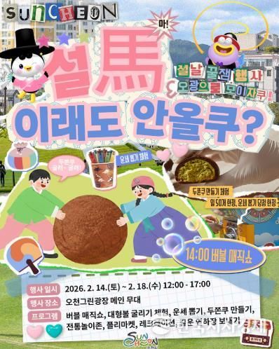 한국시사경제 전남취재본부 | 순천시는 설 명절 기간 시민과 귀성객이 함께 즐길 수 있는 참여형 문화 프로그램 '설馬, 이래도 안올쿠?'를 오는 14일부터 18일까지 오천그린광장에서 운영한다.