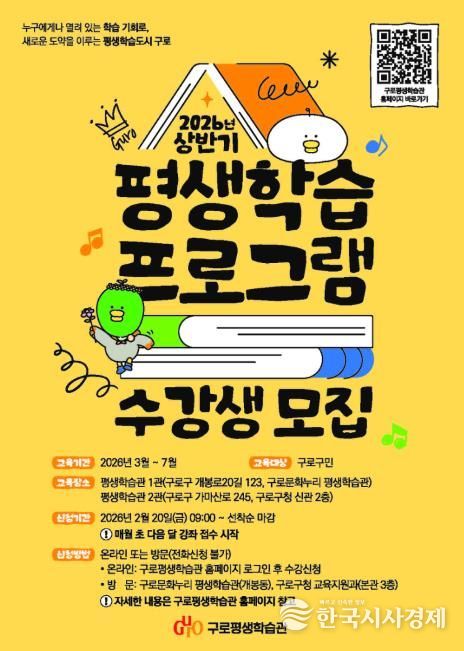한국시사경제 기동취재팀 | 구로구가 3월부터 7월까지 ‘2026년 상반기 평생학습 프로그램’을 운영한다.