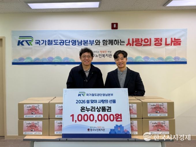 한국시사경제 김숙영 기자 | 국가철도공단 영남본부는 지난 12일 설 명절을 맞아 중구노인복지관을 방문해 온누리상품권 100만원을 전달했다.