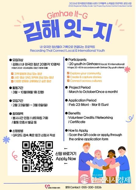 특히 김해시청년봉사단, 김해청년센터, 관내 대학, 외국인 관련 기관과 협력 체계를 구축해 청년 주도의 자발적인 네트워크 형성을 지원할 계획이다.