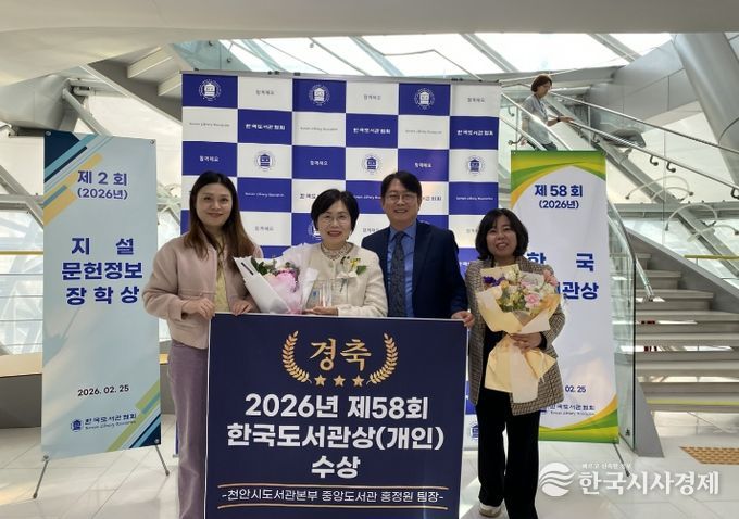 한국시사경제 충남취재본부 | 천안시는 25일 홍정원 천안시도서관본부 중앙도서관 팀장이 도서관 분야 최고 권위의 상인 제58회 한국도서관상에서 개인상을 수상했다고 밝혔다.