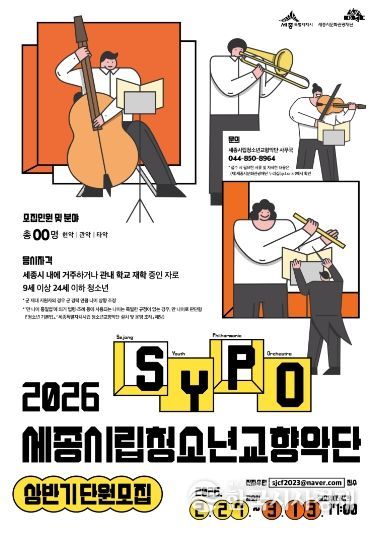 한국시사경제 세종취재분부 | 세종시립청소년교향악단이 27일부터 내달 13일까지 지역예술을 선도하는 예술단으로 함께 성장할 참신하고 실력 있는 2026년 신규단원을 모집한다.