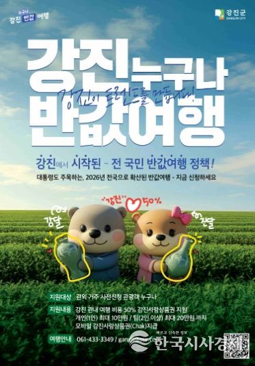 특히 이번 사업은 강진군이 선도적으로 추진해 전국적 주목을 받았던 ‘반값여행’ 정책을 정부가 제도화한 것으로, 전남이 지역관광 활성화 정책의 선도 모델을 제시했다는 점에서 의미가 크다.