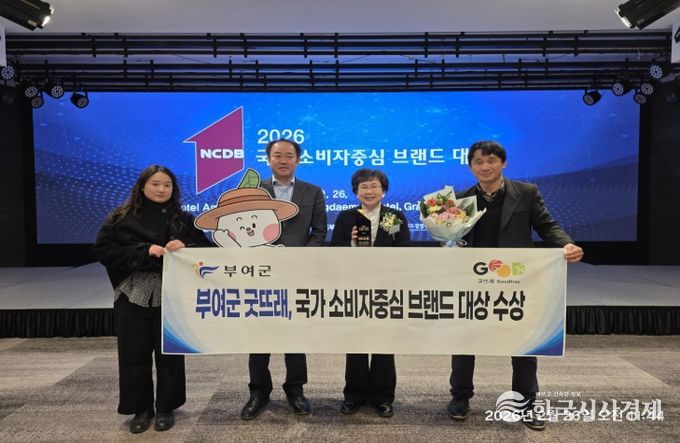 한국시사경제 김태훈 기자 | 부여군 공동브랜드‘굿뜨래’가 지난 26일 ‘2026 국가 소비자중심 브랜드 대상’에서 농특산물 공동브랜드 부문 3년 연속 수상의 영예를 안았다.