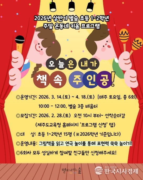 한국시사경제 노승선 기자 | 제주도교육청 제주도서관은 3월 14일부터 4월 18일까지 초등학교 1~2학년 아동을 대상으로 그림책과 연극 놀이를 결합한 주말 온동네 키움 프로그램 ‘오늘은 내가 책 속 주인공!’을 운영한다.