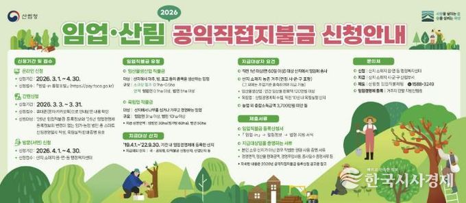 한국시사경제 경기북부취재본부 | 동두천시는 2026년 임업·산림 공익직접지불금 신청 접수를 3월 1일부터 4월 30일까지 실시한다.