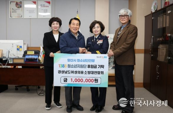 한국시사경제 노승선 기자 | 경상남도 여성의용소방대연합회(회장 김복야)는 27일 양산시를 방문해 후원금 100만원을 양산시청소년상담복지센터 1388청소년지원단에 기탁했다.