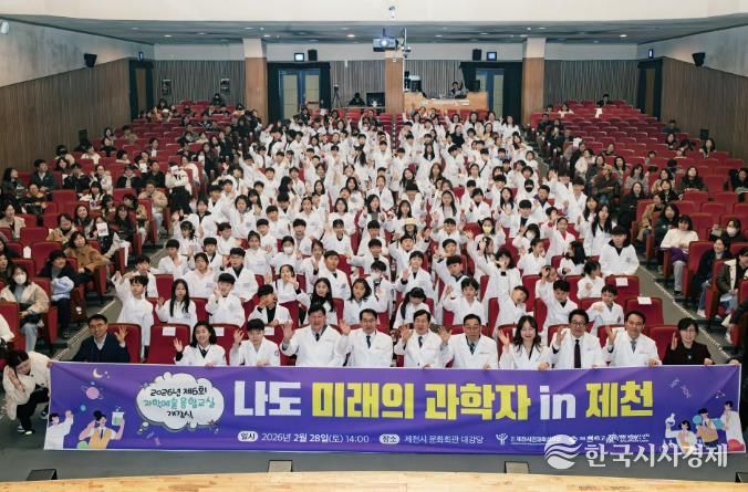 한국시사경제 충북취재본부 | 제천시인재육성재단은 지난 28일 제천시 문화회관에서 '2026년 제6회 과학·예술 융합교실 개강식 ‘나도 미래의 과학자 in 제천’'을 성황리에 개최했다.